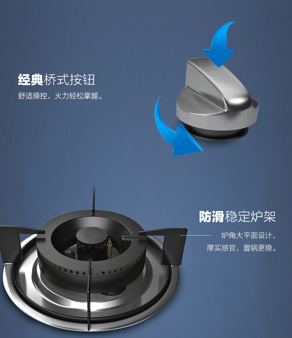 1.全新4.2KW大火力专利炉头,全铜材质,表面宜瓷龙处理,耐高温不变形